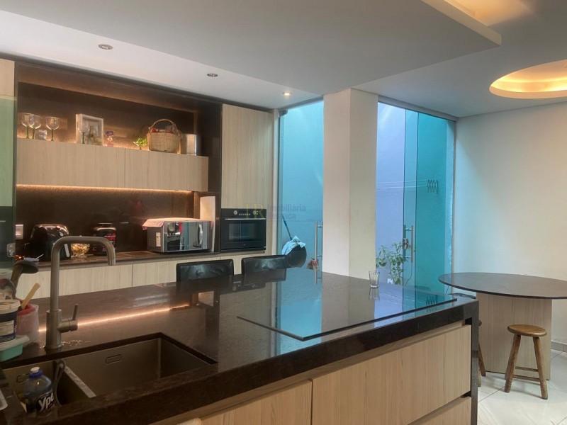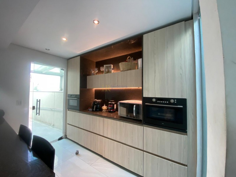 CASA TRIPLEX - LOTE DE 180m2 B- ÁREA CONSTRUIDA 220m2 - COMPOSTA POR 4 QUARTOS COM ARMÁRIOS PLANEJADOS E PISOS PORCELANATO - SENDO 1 SUÍTE COM BOX BLINDEX E ARMÁRIO - 1 LAVABO - 2 BANHOS SOCIAL COM BOX - COZINHA PLANEJADA COM ILHA EM GRANITO E BANCADAS - EQUIPADA COM ELETROS IMBUTIDOS 2 FORNOS -FOGÃO COOK TOP - SALA COM SANCA E ILUMINAÇÃO DE LED -CORTINAS IMBUTIDAS -5 VAGAS - TERRAÇO EM L COBERTO EM COLONIAL - DUCHA . ESPAÇO GOURMET .